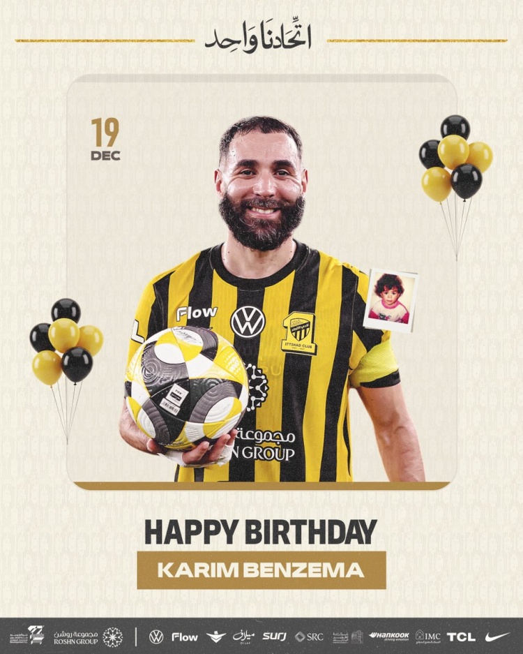 吉达联合晒海报祝贺本泽马38岁生日,加盟以来出场74次打进49球